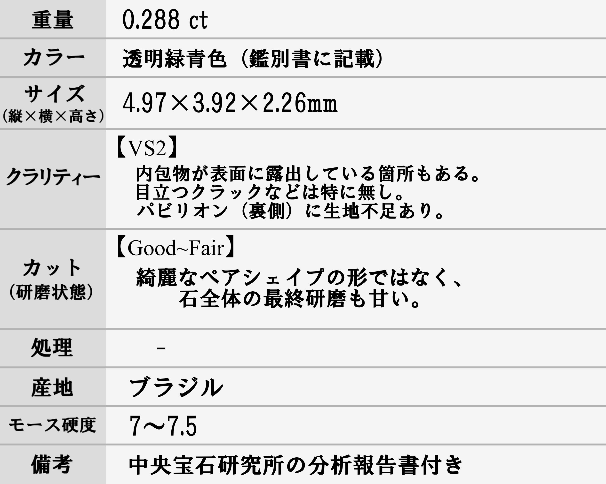 ※ ルースの詳細は、写真の表をご覧下さい ※